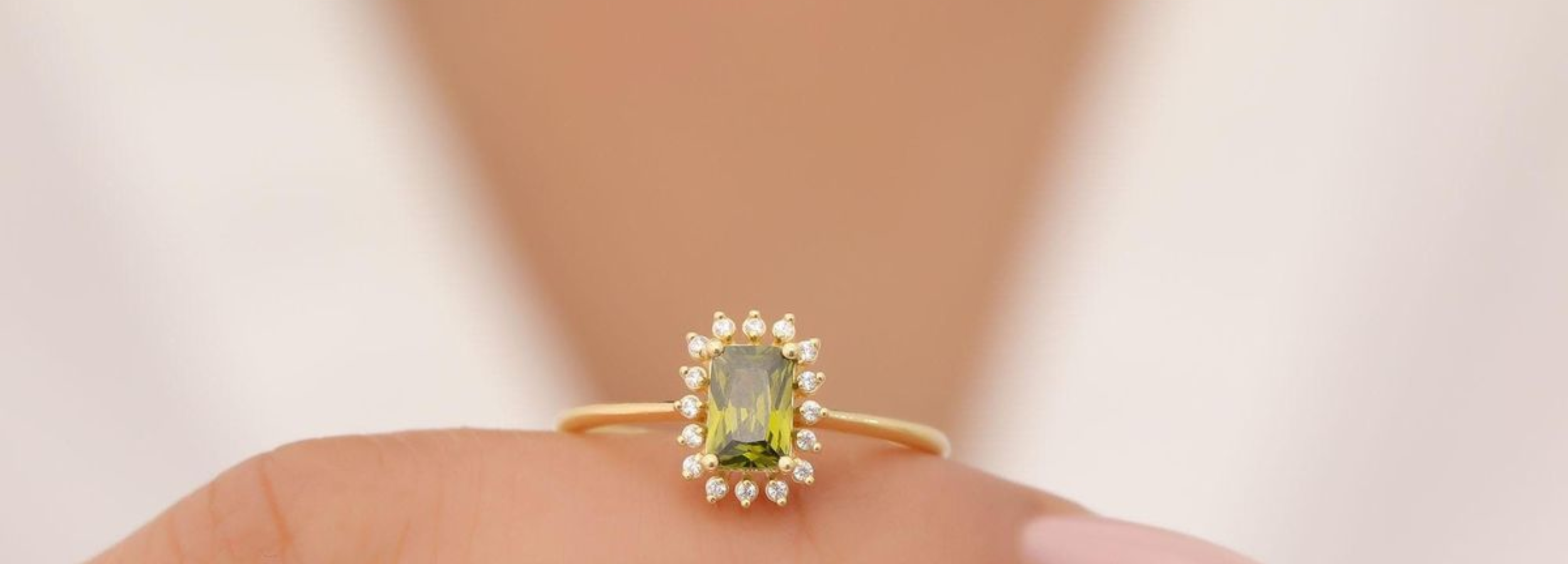 Cushion-Cut Peridot & Diamond Halo Ring